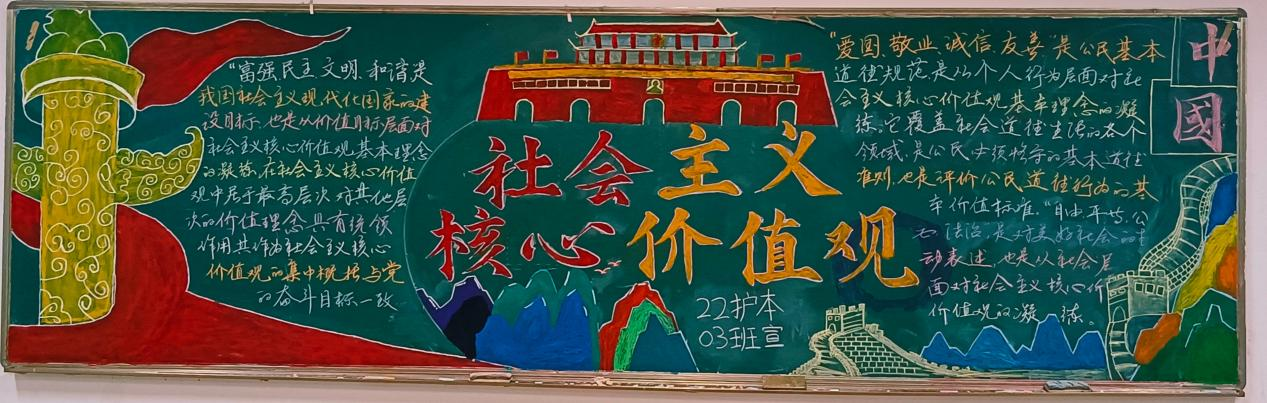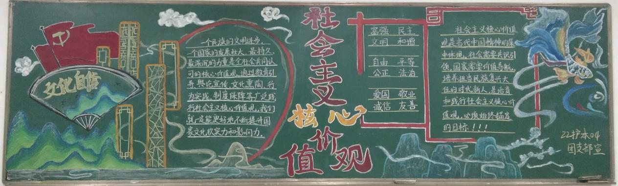 本次“践行社会主义核心价值观,争做文明守纪好青年”为主题的黑板报作品紧扣活动主题,内容健康丰富且具有教育意义,形式多样、突出爱国、彰显个人修养,全面宣传了社会主义核心价值观的思想,也表达了同学们自身对社会主义核心价值观的态度;一张张黑板报既达到了宣传、教育的目的,又为创造良好校园文化,创建和谐校园增添了亮丽的色彩。