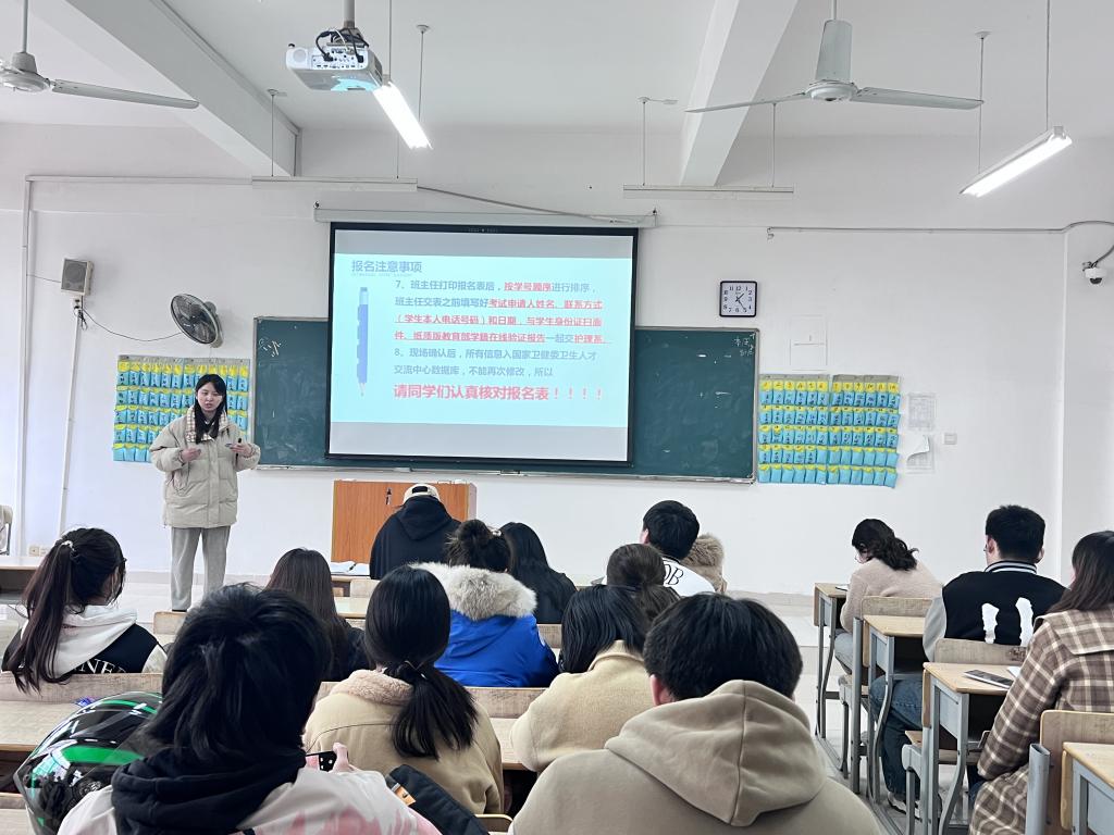 2024年全国护士执业资格考试报名工作将于2023年12月7日开始,根据江西省卫生健康委、江西省人力资源和社会保障厅《关于做好2024年度护士执业资格考试工作的通知》(赣卫人字〔2023〕36号)文件要求,为确保178体育学生考试报名工作顺利进行,178体育直播在2023年12月6日中午12:50组织2021级高职护理班级、2022级中高职对接班级所有辅导员和各班班委代表参加了2024年护士执业资格考试报名指导培训。