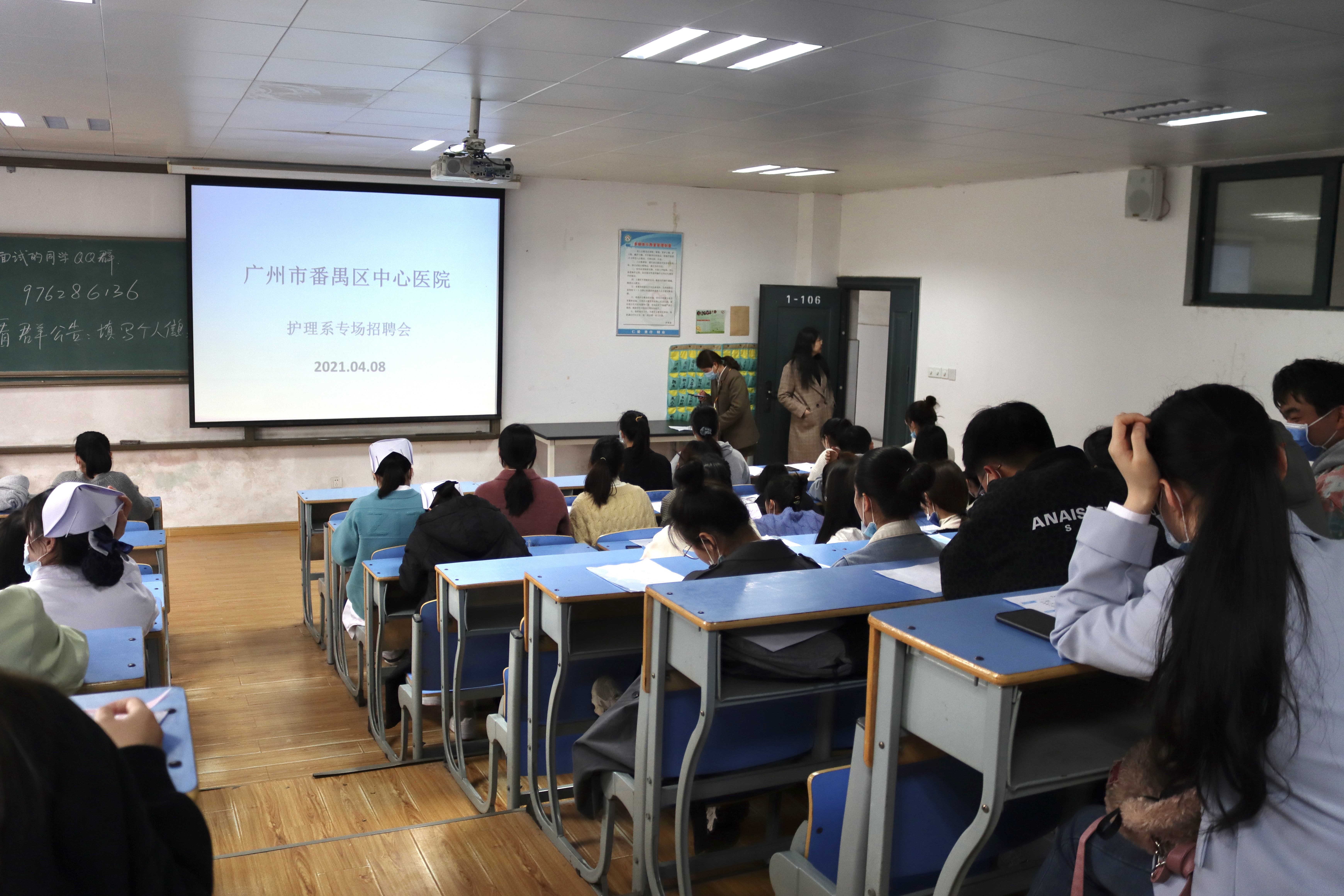 四月芬芳,花开正盛,又是一个青春蓬发的毕业季。在学院各级领导的关心帮助及招就处的大力支持下,4月8日下午,护理系成功举办2021届毕业生广州市番禺区中心医院专场招聘会。招聘会共吸引近百名护理专业毕业生返校参加。学院副院长柯丰年、招生就业处处长廖立红莅临现场指导工作。