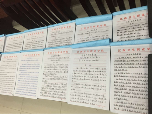 6月20日中午,护理系组织了全体党员教师在1栋实训楼党员活动室进行了手抄党章及“两学一做”学习心得评比大赛。联系点院领导徐国华副院长到场进行指导。