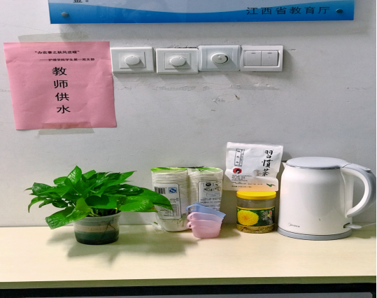 得知此情况后,178体育直播学生第一党支部结合党史学习教育宗旨,深入落实“我为群众办实事”实践举措,在2号教学楼210办公室整理出一张茶水台,并准备好热水壶、纸杯、茶叶,摆放好座椅,为每日上课的老师送上“秋冬的第一杯热茶”,让老师们在日渐寒冷的日子里,感受到丝丝的温暖。