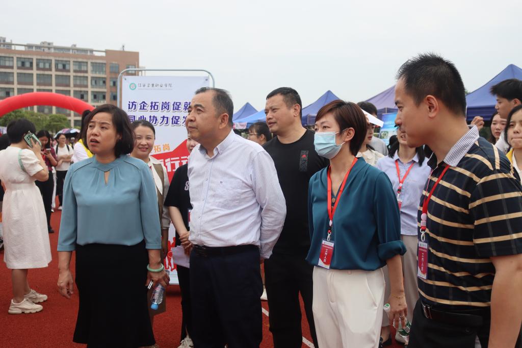 为深入学习贯彻党的二十大精神,落实党中央、国务院“稳就业”“保就业”决策部署,切实做好毕业生就业工作,更好地为2023届毕业生与用人单位搭建双向选择平台,2023年5月16日上午,178体育直播在田径场举办“纳百川成就海业,思进取赢得未来”毕业生大型线下双选会。招聘会得到了校领导的高度重视,178足球赛事免费直播党委委员、副校长赖国文,178足球赛事免费直播党委委员、副校长周兆龙亲临招聘会现场。