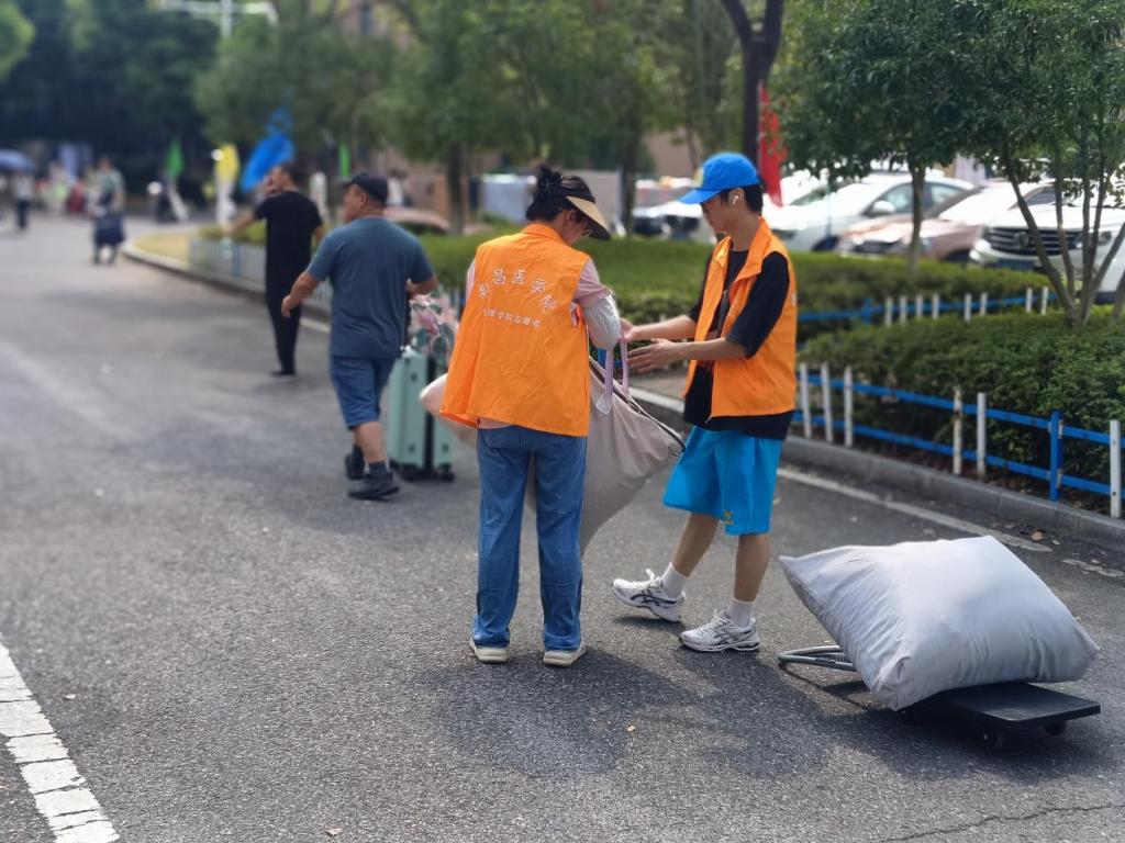 烈日炎炎,汗水浸透了志愿者的衣衫,但他们始终保持着高昂的斗志,用真诚微笑和默默付出,温暖着每一位新生的心灵。