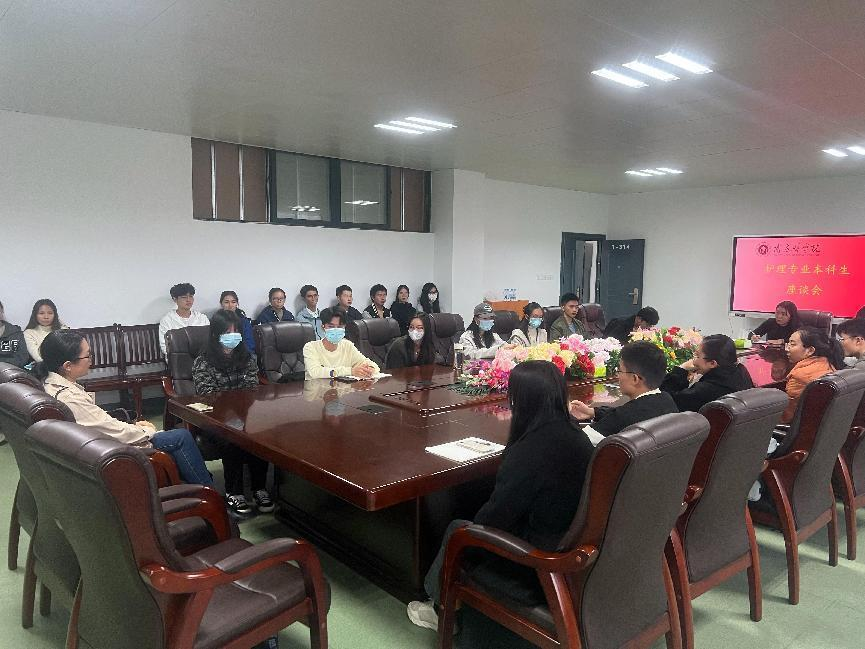 会上,几位老师认真听取了学生代表的发言,并针对学生提出的实训室改善问题、教学资源拓展问题、考研问题、就业问题等给予了一一回答。通过本次座谈会,学生明确了学习目标,并对自己的职业生涯规划有了一定思考,同学们对教学方面提出的改进意见也有利于促进护理本科教学质量更上一台阶。