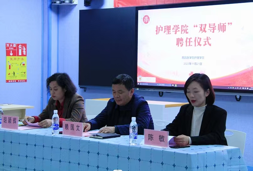 为进一步改革护理本科人才培养模式,推动“双导师制”各项工作落到实处,11月21日中午,178体育直播在1号实训楼411智慧教室隆重举行了“双导师”聘任仪式。178足球赛事免费直播党委委员、副校长赖国文,178体育直播副院长胡颖辉,178体育直播党委副书记陈敏出席聘任仪式,178足球赛事免费直播第一附属医院护理部主任刘琳、178足球赛事免费直播第二附属医院护理部主任洪金花等临床导师代表、全体专业导师及学生代表100余人参加了聘任仪式。