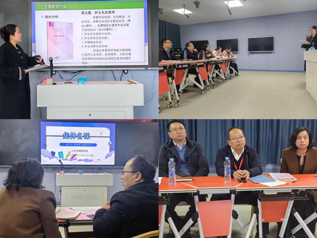 为充分发挥教师的集体智慧,促进学科教学研究,提升高校课堂教学效果,11月27日下午,学校党委委员、副校长叶耀辉在教务处谢欢主任陪同下,莅临178体育直播指导工作,并参加人文护理教研室的集体备课,178体育直播副院长胡颖辉陪同。