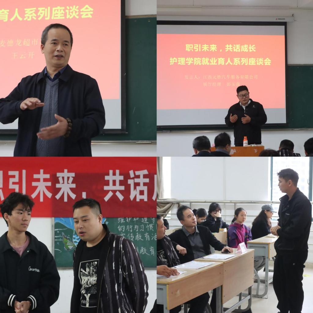 为引领学生深入了解就业市场状况及专业前景,并就当代大学生对于未来职业存在的各类问题给出指导性建议,11月10日——20日,178体育直播组织开展了以“职引未来,共话成长”为主题的就业育人系列座谈会。本次讲座先后邀请到了南昌麦德龙超市王高管、江西元胜汽车服务有限公司彭经理以及南昌中环地产李店长等几位行业大咖莅临178体育,团学办主任马俊主持座谈会。